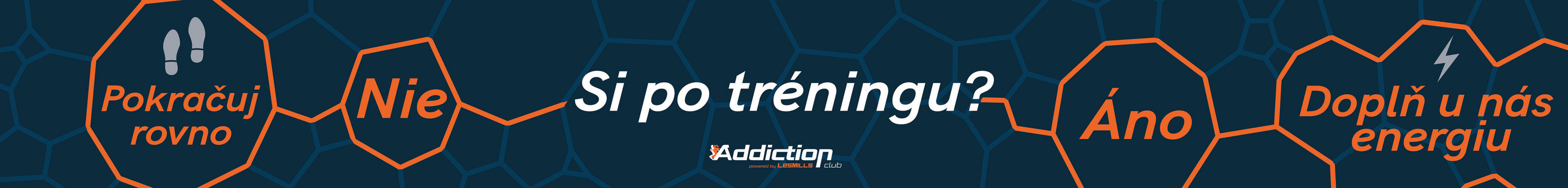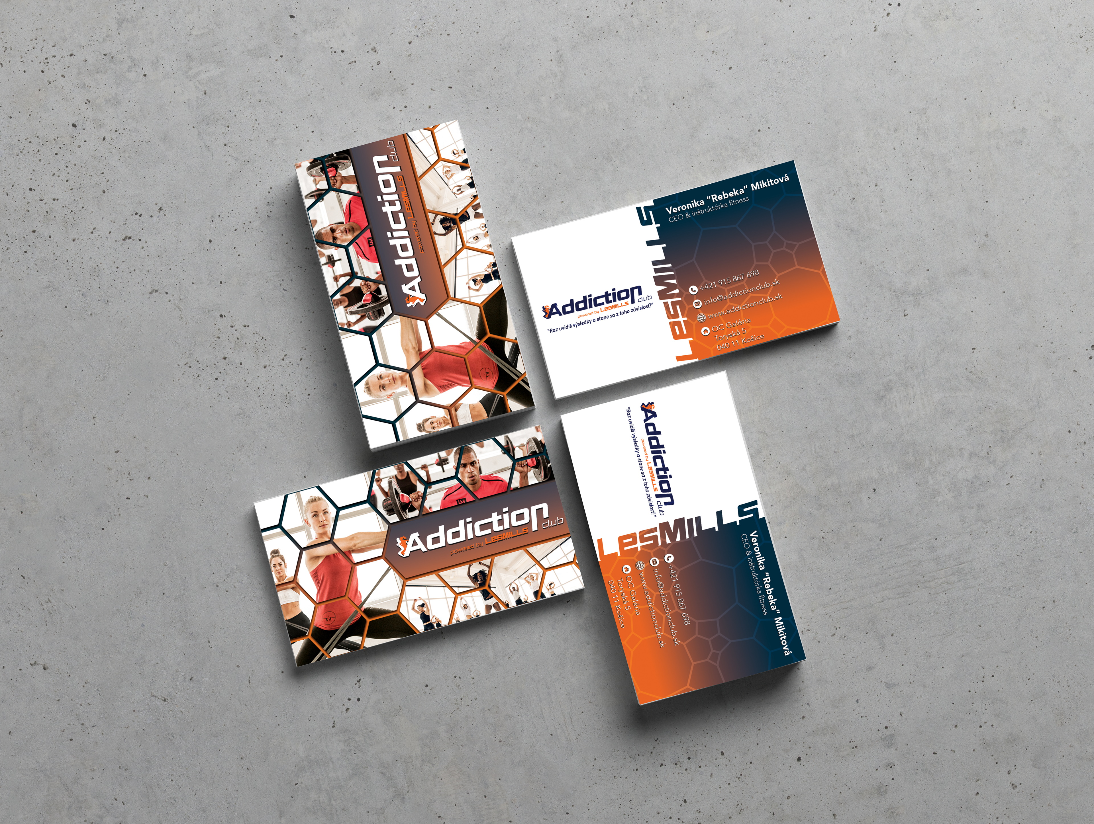 Addiction Club is a Les Mills fitness club based in Košice. We worked together since 2016. During this period we created the whole brand identity, POP materials, clothing, and many more. Some of the work can be seen below.